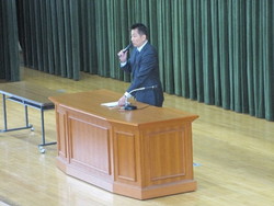 また生徒指導部長より、「ルール(決められたこと)を守り、他者を考えて行動しているか」「良い人間関係が作れているか」「正しい方法でスマートフォンの利用ができているか」「挨拶ができているか」という4つの視点から、2学期の行動を振り返るよう講話がありました。