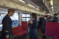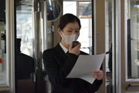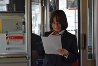 参加生徒39名が車内へ乗車し、そのうち4名が自分の作品を車内に掲示させていただきました。生徒1名が代表としてあいさつを行い、制作に込めた思いや感謝の気持ちを伝えました。