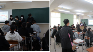 11/21(金)5、6限 1年次普通科が、“未来からの挑戦状”のクラス発表会を行いました。 探究の授業は、週一回で、地域課題を学び、仲間と協働して解決策を探究することを通して探究の手法を学ぶことを目的としています。 1テーマ4~5名の9テー...