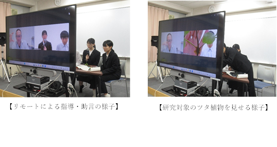 現在、生物自然科学部では、自生するあるツタ植物が壁面にどのように付着しているのかについて研究を進めています。今回のご助言では、中川先生から研究の進め方についての多くのアドバイスをいただきました。最初は緊張した様子だった生徒たちも、先生との質疑応答を重ねる中で徐々に自分の考えを表現できるようになり、多くの気づきを得ている様子が見られました。