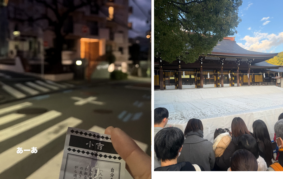 Hi everyone, it’s Yellow. Happy New Year! あけましておめでとうございます!今年もよろしくお願いします。How did you spend your new years? I heard that in Japan, people commonly spend the holiday with their families in their hometowns, and they eat special food and enjoy each other’s company. As for me, I went to many different places by myself, because my family is not here. In the end, I even took a nice nap in the shower at an onsen, and the staff had to come get me. Amazing! By the way, have you drawn your fortune at a shrine yet? For the past two years, I’ve gotten 大吉! But this year… This year I only got 小吉… Oh my god.