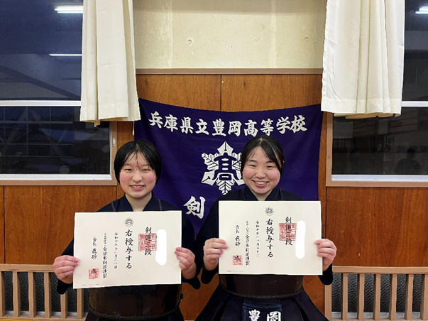 このたび、11 月に審査を受けた 2 名の生徒が、無事に「剣道三段」を授与されました。