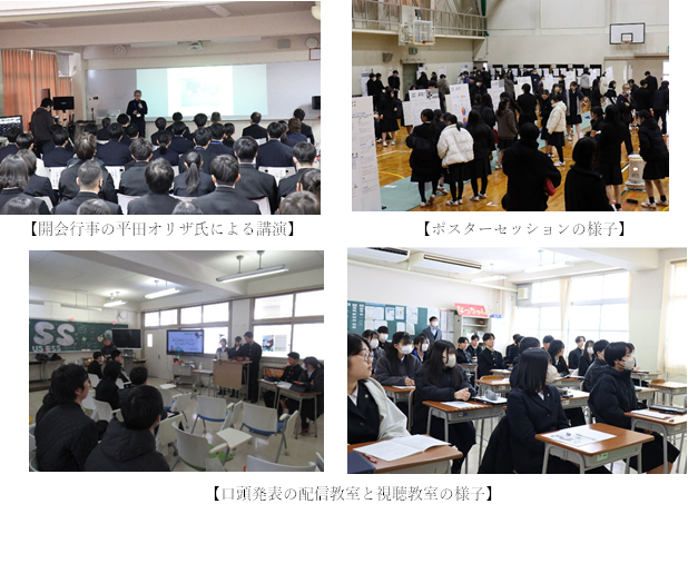 午後の口頭発表では、本校の代表班のほか、協力校の生徒や本校卒業生による多様なテーマの発表が行われました。教室が満席になるほど多くの聴衆が集まる発表もあり、質疑応答では生徒たちが積極的に手を挙げて質問する姿が見られました。