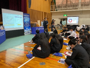 今回の講義の目的は、企業の現場における探究的な取り組みを知ること、文理それぞれで学習する内容・大学の学部・企業の業種がどのような関わりがあるのかを知ること、地域や働くことについて知ることとなっています。