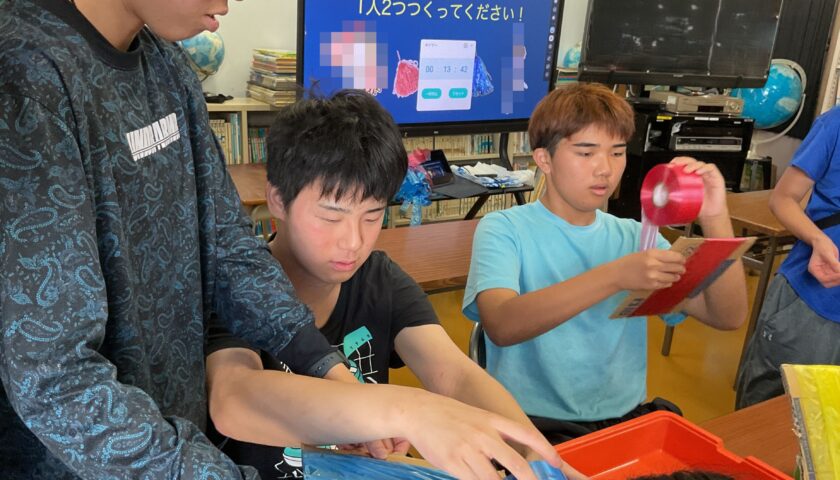 高等部1年生は、ひまわり特別支援学校との交流を行いました。事前学習では、当日のスケジュールの確認や交流でダンスをする時に使うポンポンを作りました。 当日は、ダンスやゲームなどを通してひまわりの生徒と楽しそうに交流をする