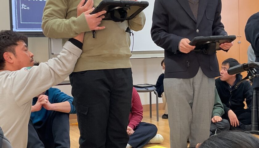 1月15日の学部集会の中で、現場実習の報告を行いました。それぞれの生徒が経験した現場実習の内容や感想、反省などを写真と共にスライドにまとめ、それを基に一人ずつ発表しました。高等部の生徒だけではなく、三田市や就労支援機関