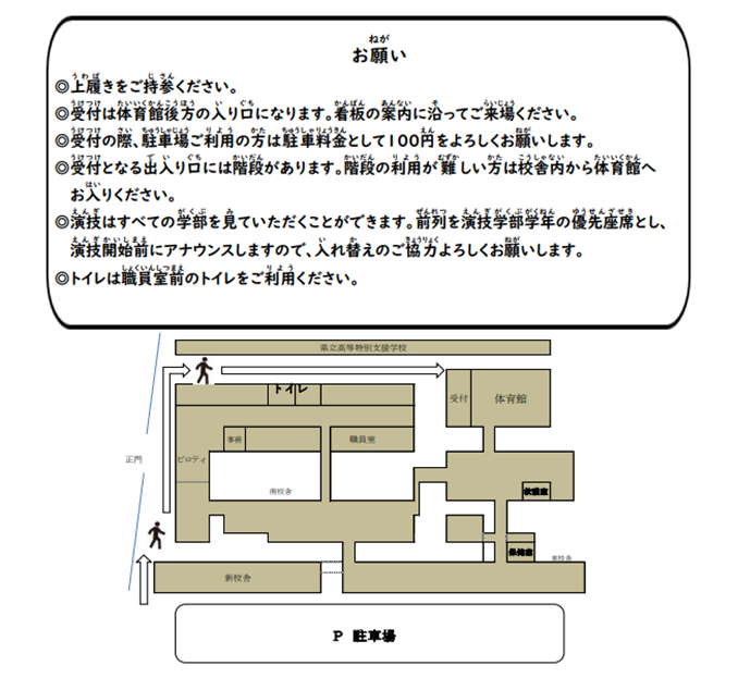 ※外部の方は受付を済ませ、校内ではゲスト用バッジの着用をお願いします。