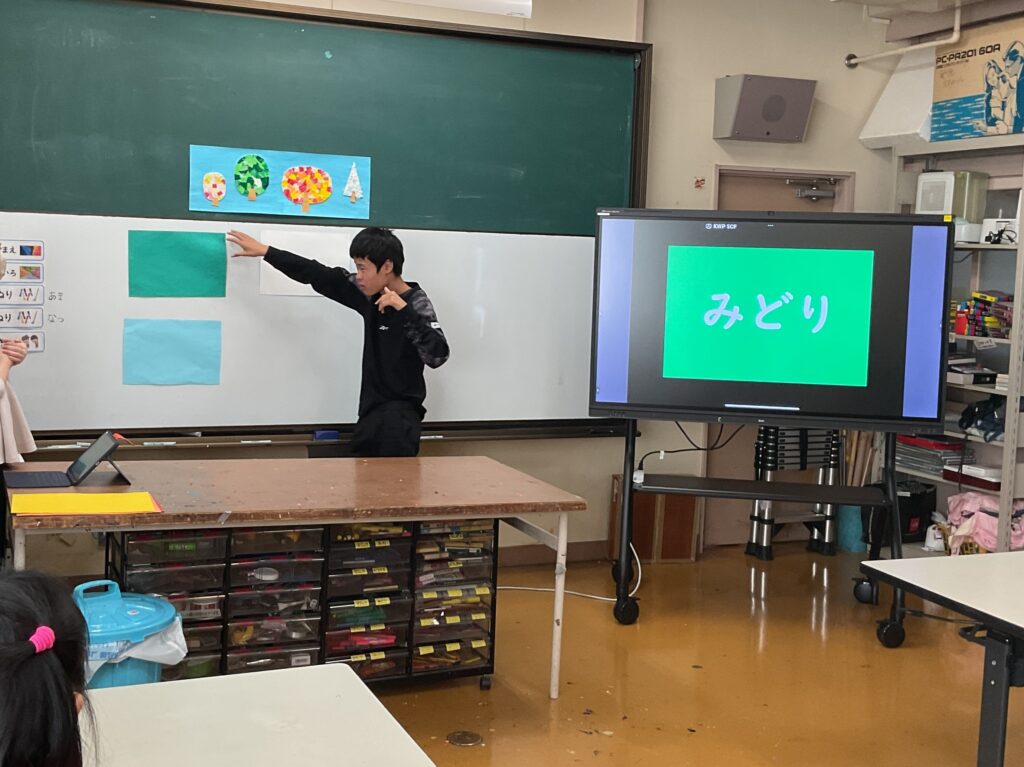 2学期の美術の授業の様子について、ご紹介します。1班は「季節の森を作ろう」という作品を作っています。春、夏、秋、冬の風景の写真の中から、その季節にあった色を探し、秋の木に使う色は「赤、黄、オレンジ」など、季節と色を関連させるような作品を制作中です。班のみんなで協力して、どのような大作になるのかお楽しみに!