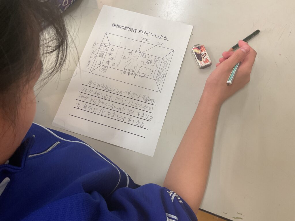 2班の生徒たちは「理想のお部屋」という作品の制作にとりかかりました。壁紙や家具などのデザインはもちろん、どんな人が何をする部屋なのかイメージを膨らませて言語化し、それを立体模型にする予定です。根気のいる制作ですが、完成させられるよう頑張っています。