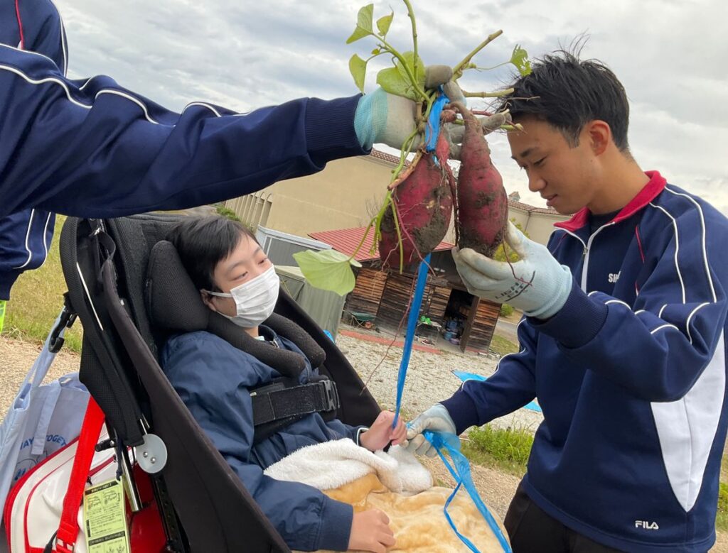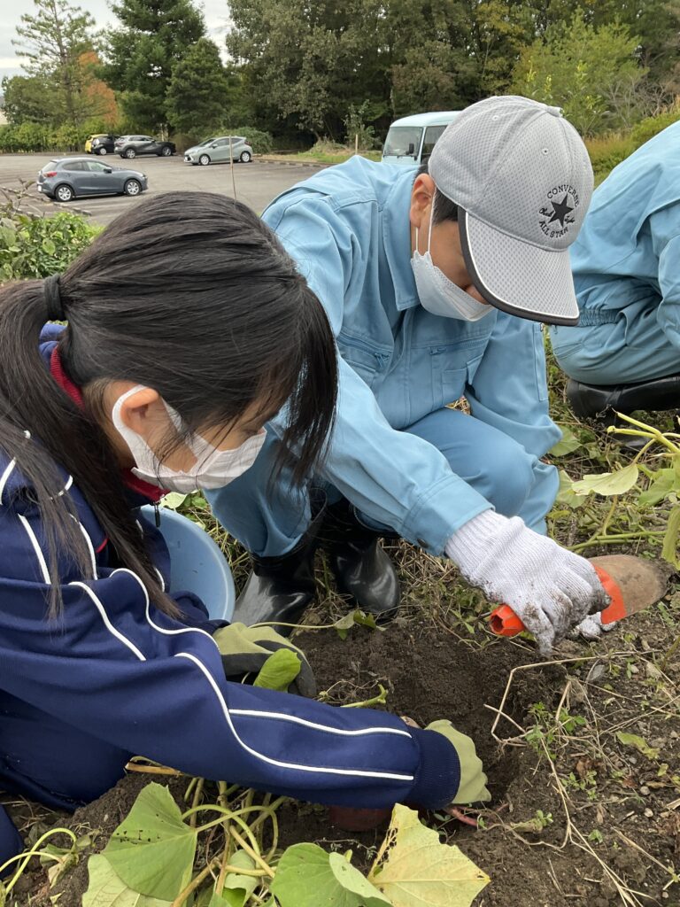 高等部R6入学生 高等部 11月5日 高2交流及び共同学習 2025年11月12日 県立上野ケ原特別支援学校 三田祥雲館高校との交流及び共同学習では、さつまいも掘りと前回種植えをした野菜の収穫を行いました。大きく育ったさつまいもの掘り方を教えてもらい、学校生活の話などをしながら一緒に収穫ができました。