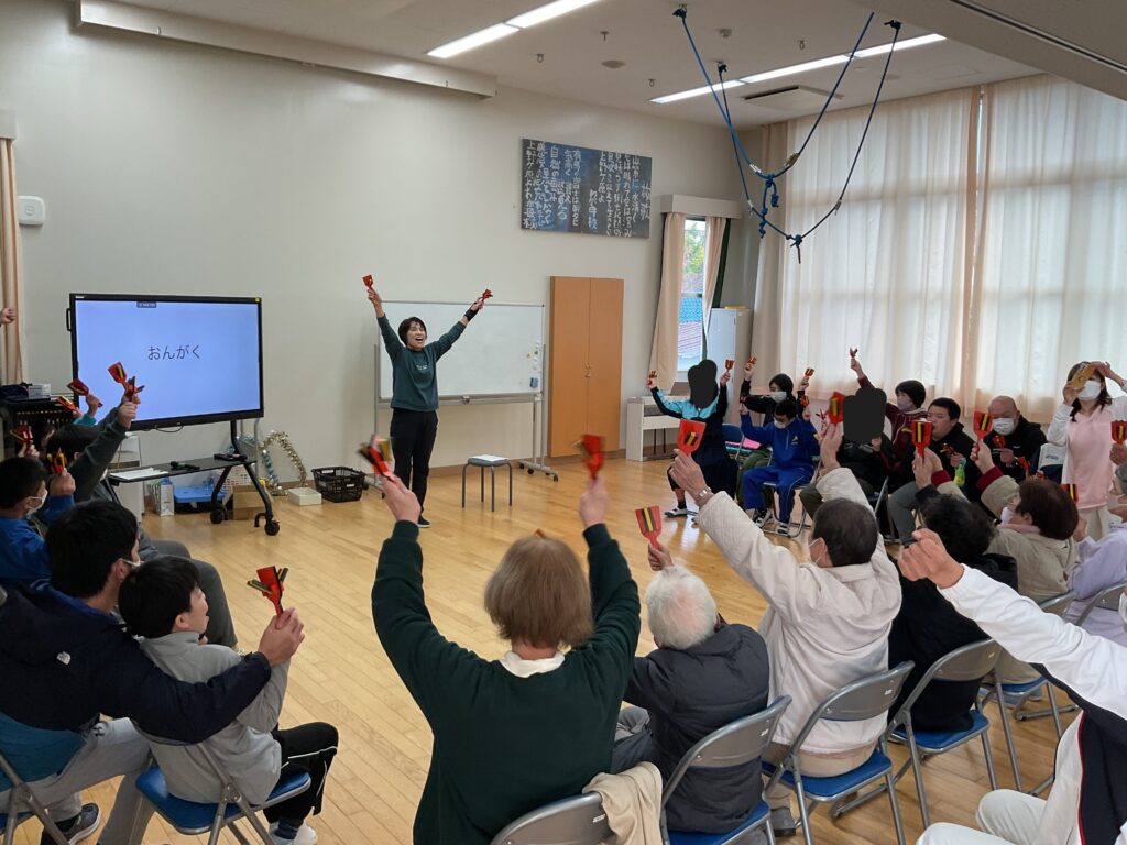 当日は自己紹介やクイズ、音楽などで利用者の方々と楽しそうに交流をする様子が見られました。利用者からは「出会えて良かった」「ここ最近で1番楽しかった」などの感想をいただき、笑顔あふれる充実した交流となりました。