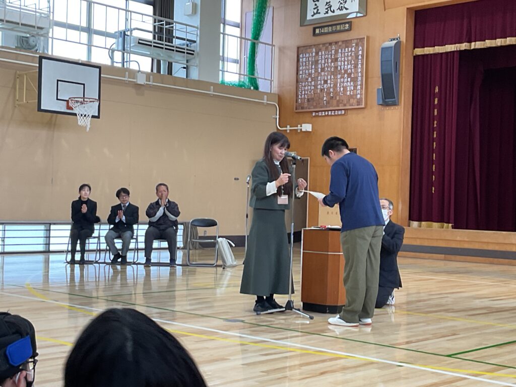 式後、美術展や技能検定の表彰式があり、受検生それぞれの頑張りをみんなでたたえました。