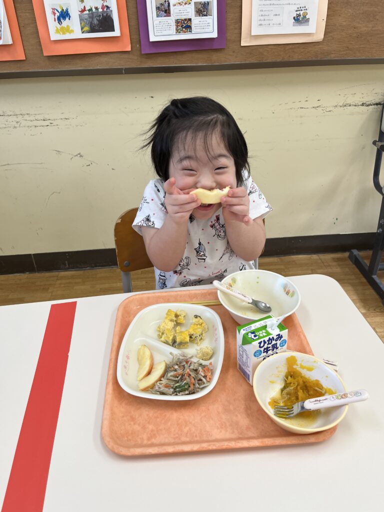 但農どりは、みんな大好きなチキンカレーに、かぼちゃときゅうりはごま和えにして美味しくいただきました。