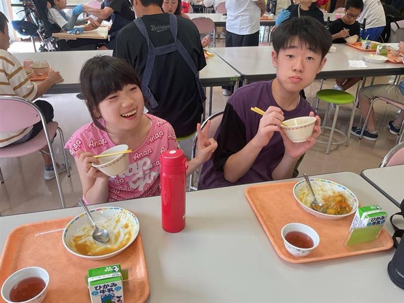 但農どりは、みんな大好きなチキンカレーに、かぼちゃときゅうりはごま和えにして美味しくいただきました。