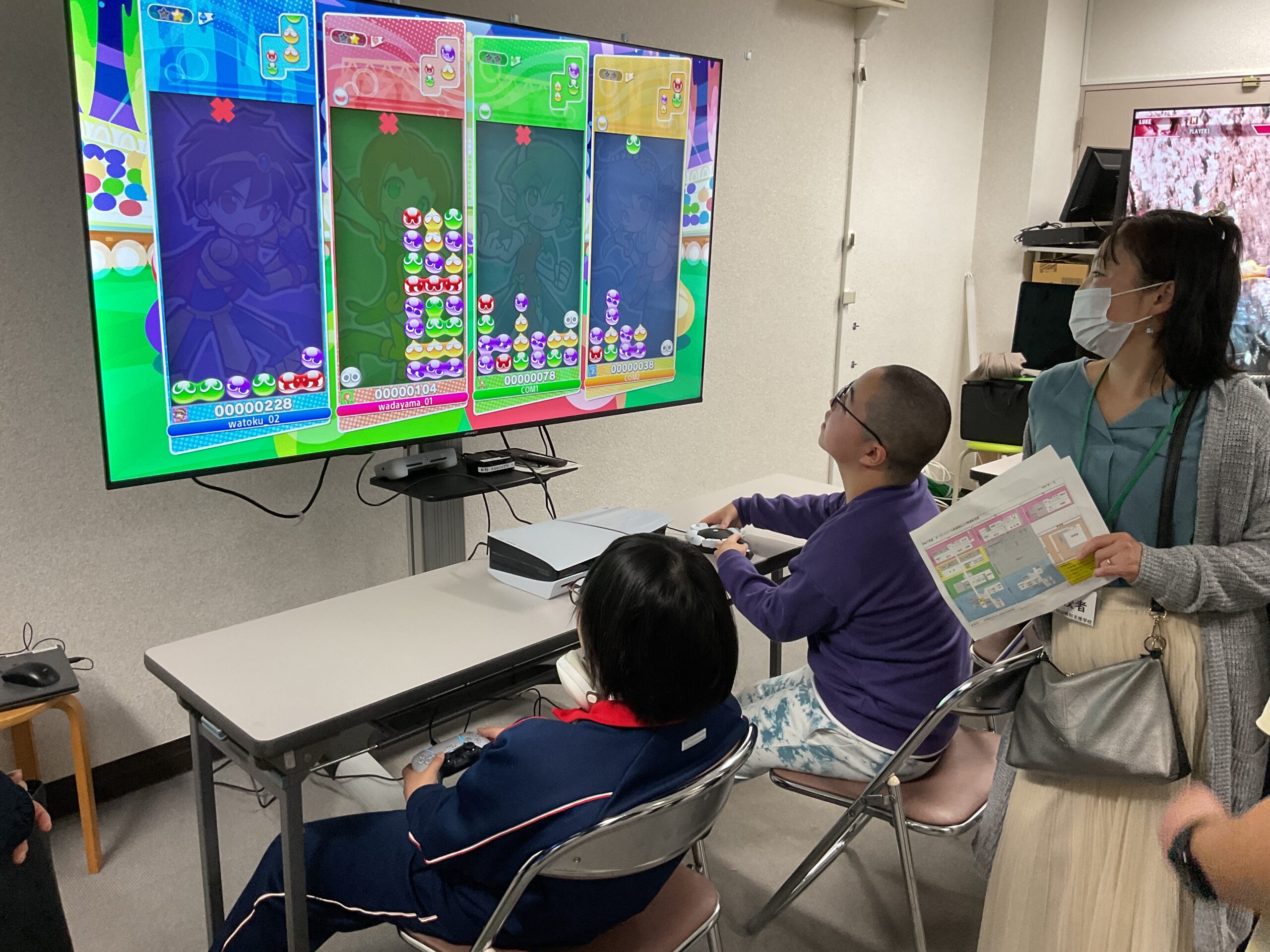 その他の会場にも、全部で24ブースありました。今年度のUD交流会も盛り上がり、児童生徒のたくさんの笑顔を見ることができました。事後アンケートでも、楽しかった、交流できた、地域交流にも有効という意見をたくさんいただきました。事後アンケートへの回答ありがとうございました。