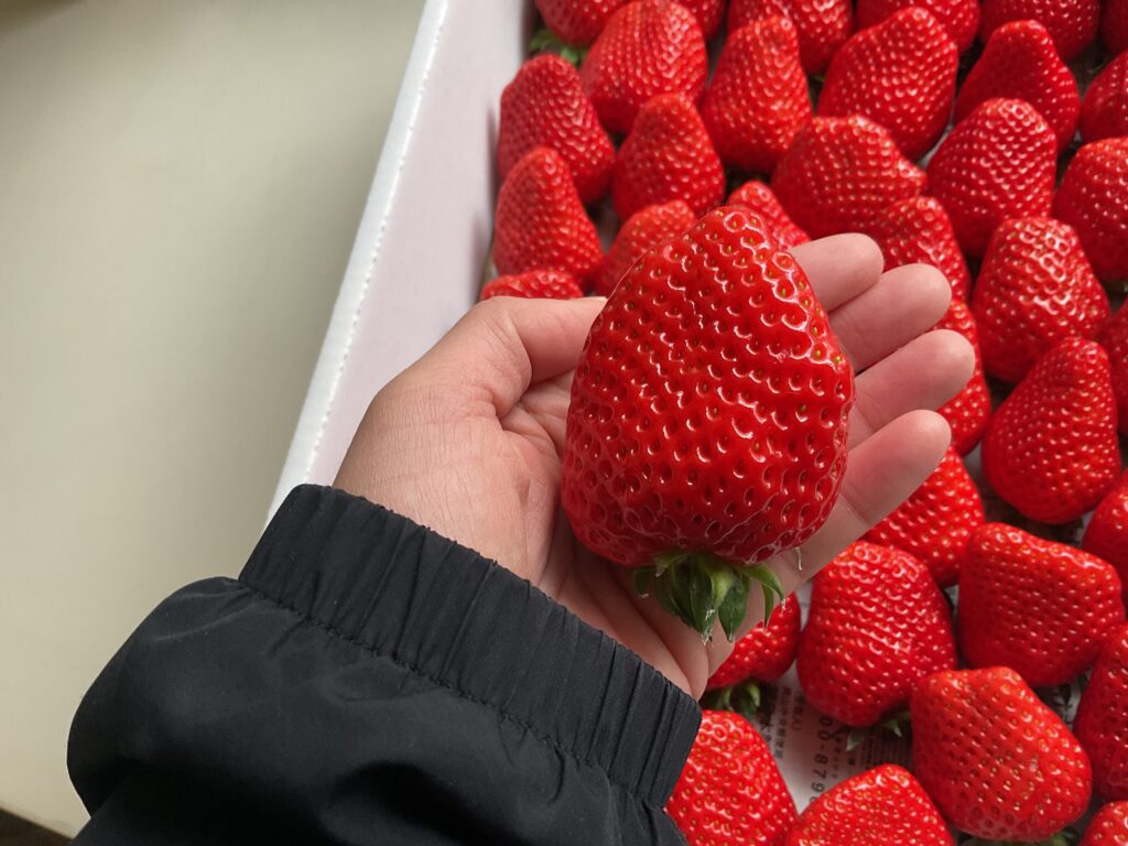 新鮮で、とても大きないちごに子どもたちもびっくり!手のひらほどのサイズです!