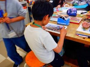 きれいに色を混ぜ合わせて塗ったり、細かいところまで描いたりするなど、最後まで丁寧に取り組んでいました。