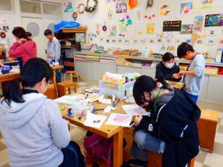 お気に入りのキャラクターを描いたプラ板、粘土で作ったかわいい動物など、思い思いの作品を仕上げていました。
