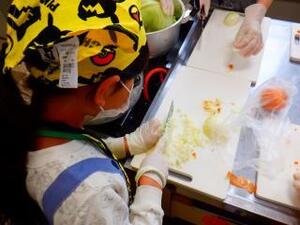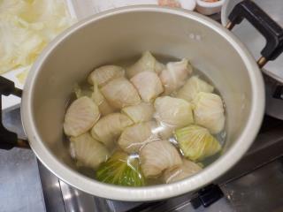 包丁で野菜をみじん切りにしたり、キャベツで鶏のひき肉をくるんだり、コンソメで味付けをしたり、みんな手際よく調理していました。