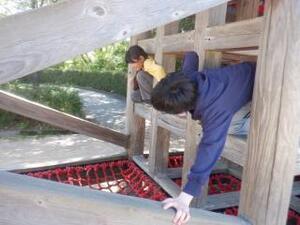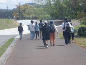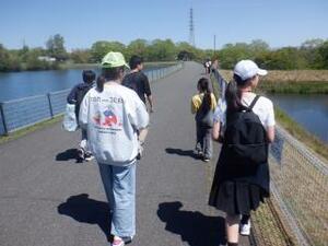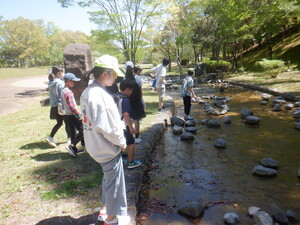 遊具で遊んだり、おしゃべりしたりしながら歩きました。