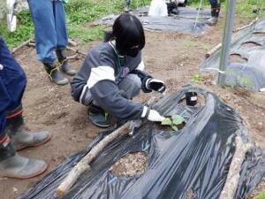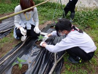 スコップで畑の土に穴を掘り、それぞれ苗を植えていきました。