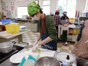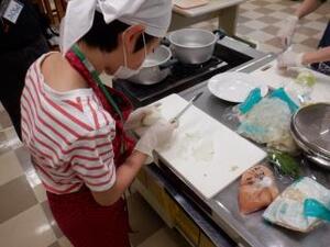 包丁で鶏肉や野菜を切ったり、ささみを茹でたりと、協力して手際よく取り組みました。