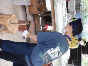 カレーを煮込んでいる間は、薪割りにも挑戦します。