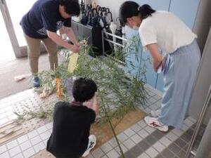 そして、7月といえば七夕。みんなで短冊に願い事を書いて、笹に飾りつけをしました。