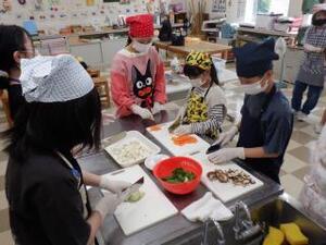 子どもたちは慣れた手つきでどんどんスープの食材を切っていきます。