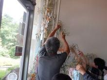 インターネットなどで調べながら、色紙を使ってにぎやかな飾りを作りました。