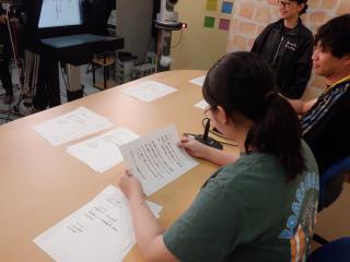 今日の地域と交流しようは、朝来市のケーブルテレビ局でアナウンサー体験。