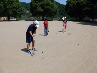 準備運動の後は、みんなでドッジボールをしました。