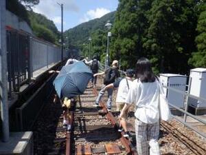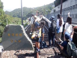 そして、観光用に設置されているレールの上をバランスをとりながら歩く子どもたち。