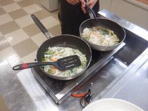チヂミを担当してくれた子は、形を整えて、上手にフライパンを返して焼くことができました。