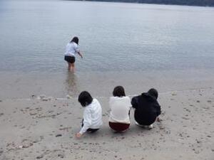 食べた後は石を投げて水切りをする子、貝殻やシーグラスを拾う子、まさかの海に入る子など海辺での遊びを満喫します。