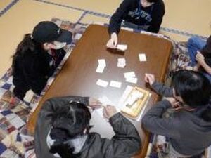 部屋の布団シーツの準備やクックママへのあいさつを済ませた後、今日はお互いをもっと知るために「トーキングゲーム」というカードゲームをしました。