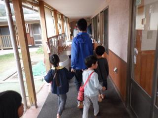 昨年経験した子も参加しましたが、それでも少し緊張した面持ちでこども園に向かいます。