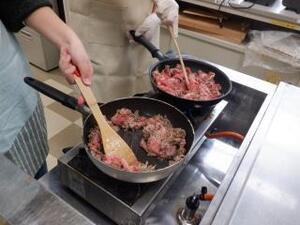 まずは牛肉に下味をつけるところからスタートしました。