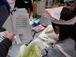 切り方の指示に「ななめ切り」「1センチ幅」など細かい指定がありましたが、子どもたちは手順書をよく見て、慎重に進めていました。