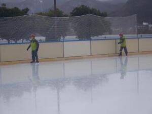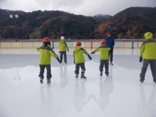 スケート靴の履き方を教えてもらい、準備運動をしたらいよいよリンクです。