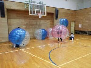 公式のボールでするチームとソフトバレーボールでするチームに分かれてします。