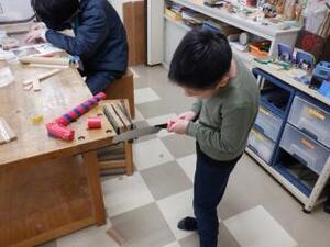 子どもたちは自分で作りたいものを選び、思い思いの作品に取り組みます。