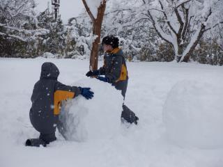 見たこともないくらいの大きな雪の大玉を作ったり、