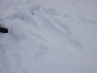 上から降ってくる雪はひと段落しましたが、深い場所では膝ほどの積雪があります。