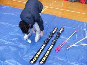 ① スキー靴・スキー板・ストックを自分の体の大きさに合わせて選ぶこと