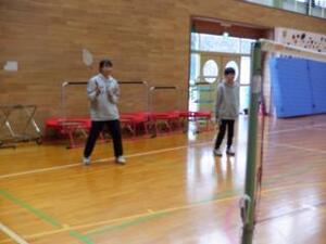 虹の館の中でも、バッティングをする子、バドミントンをする子、思い思いの活動をします。