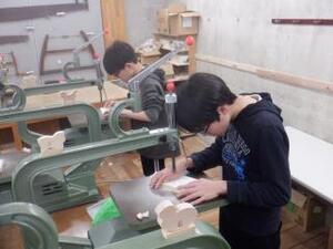 自分の作りたい絵柄を選び、電動糸鋸で切っていきます。