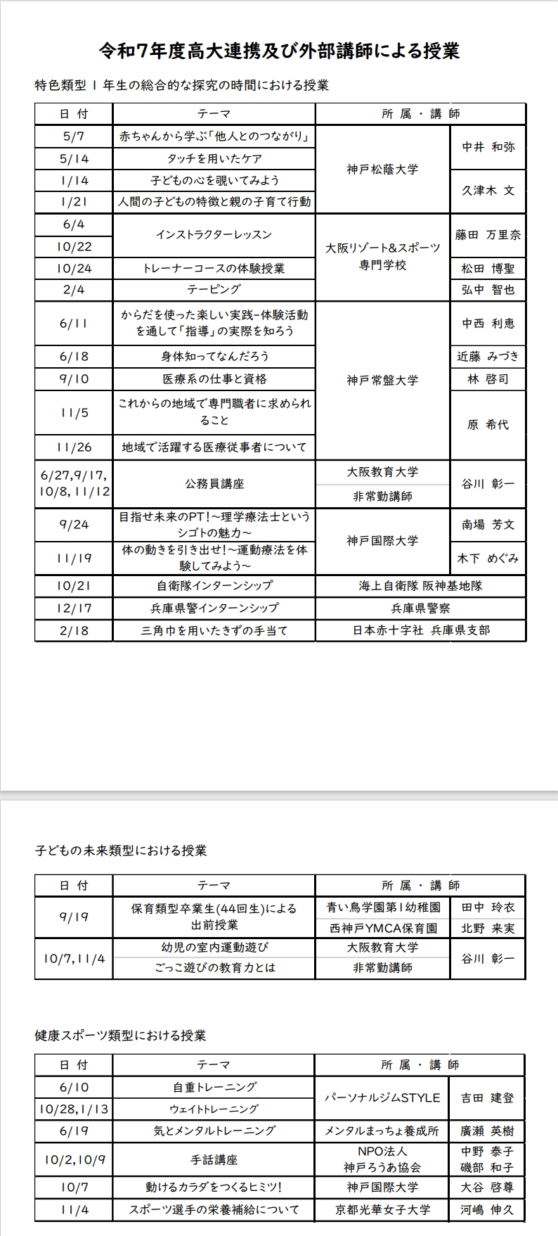 高大連携講座