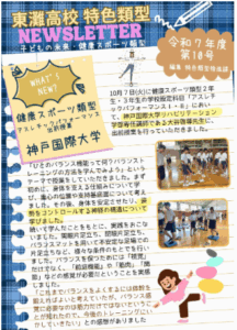 令和7年度特色類型NEWSLETTER第10号を掲載しました。今回は10月7日(火)に健康スポーツ類型2年生・3年生の学校設定科目「アスレチックパフォーマンスⅠ・Ⅱ」で行った、神戸国際大学の先生による高大連携授業についてです。