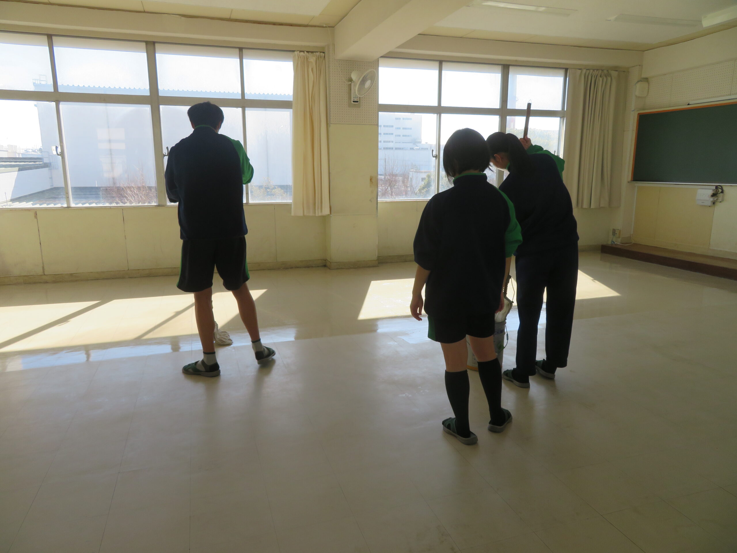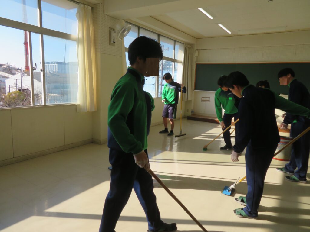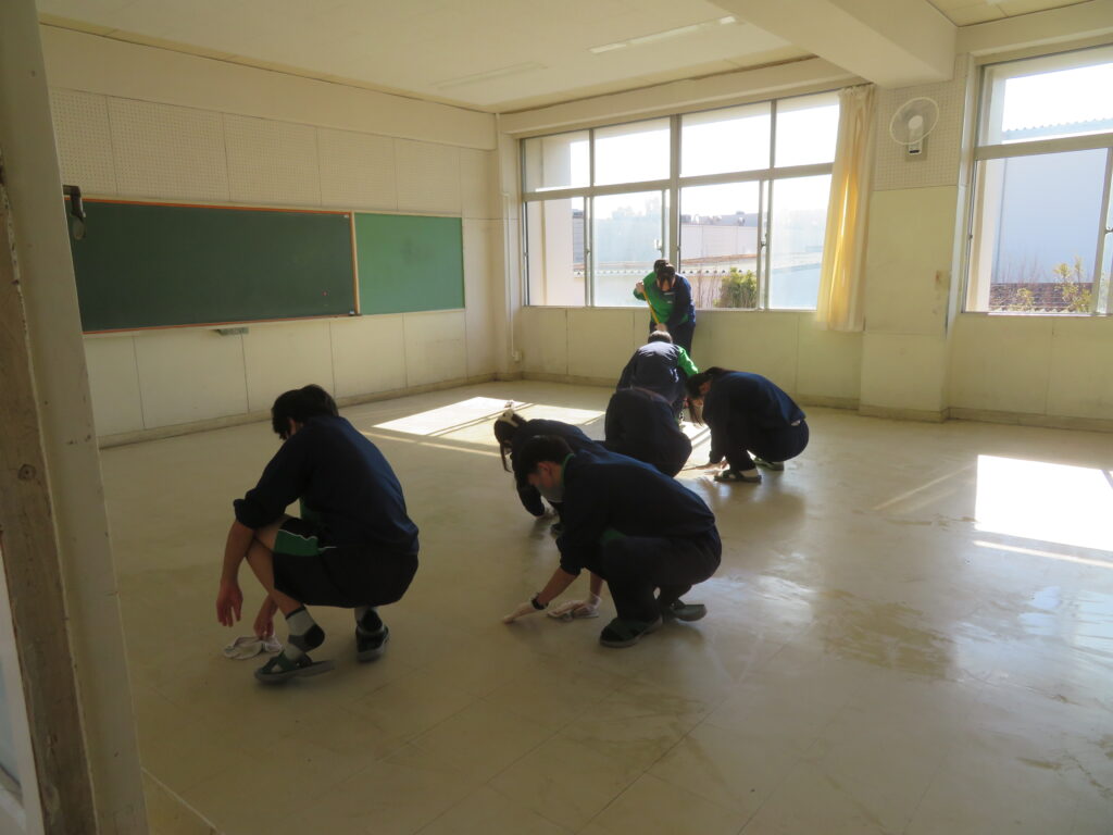 3年生ワックスがけ 2026年1月26日50回生teachers 1月23日(金)3年生がワックスがけを行いました。卒業を目前に、これまでお世話になった教室を綺麗にします。 清掃活動をした後、床磨き作業、その後ワックスがけを実施しました。 1年ぶりの作業でしたが、皆自分の仕事を見つけて取り組みました。卒業まであと少し、それぞれの思いを胸に過ごしていきましょう。